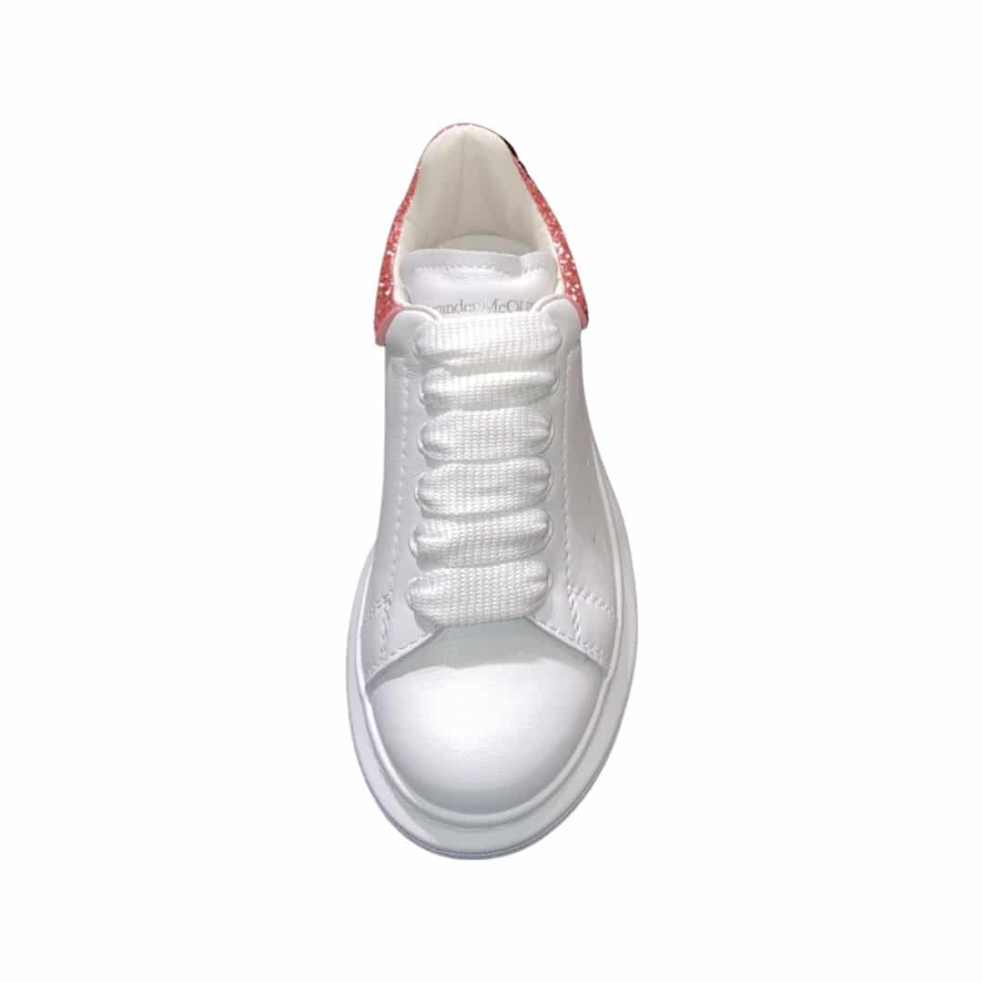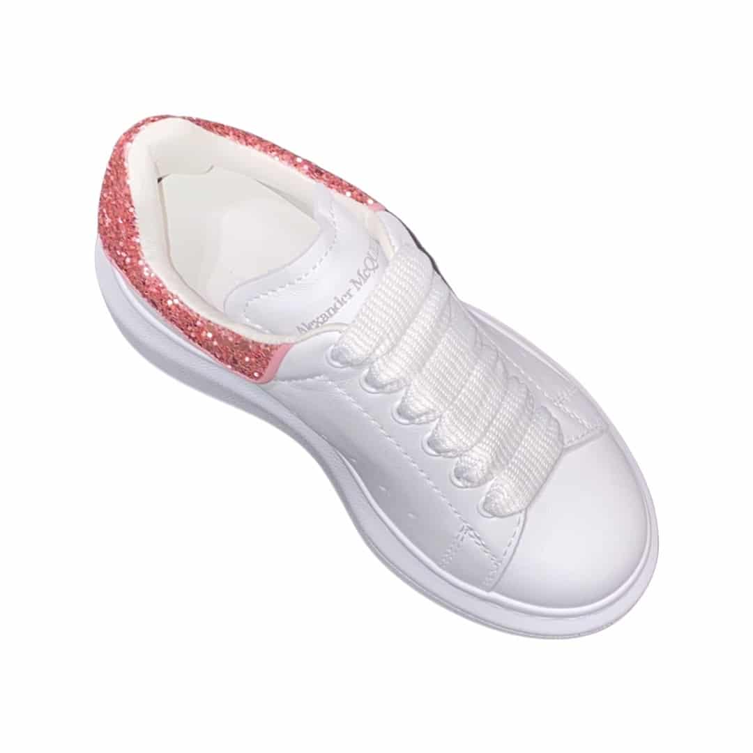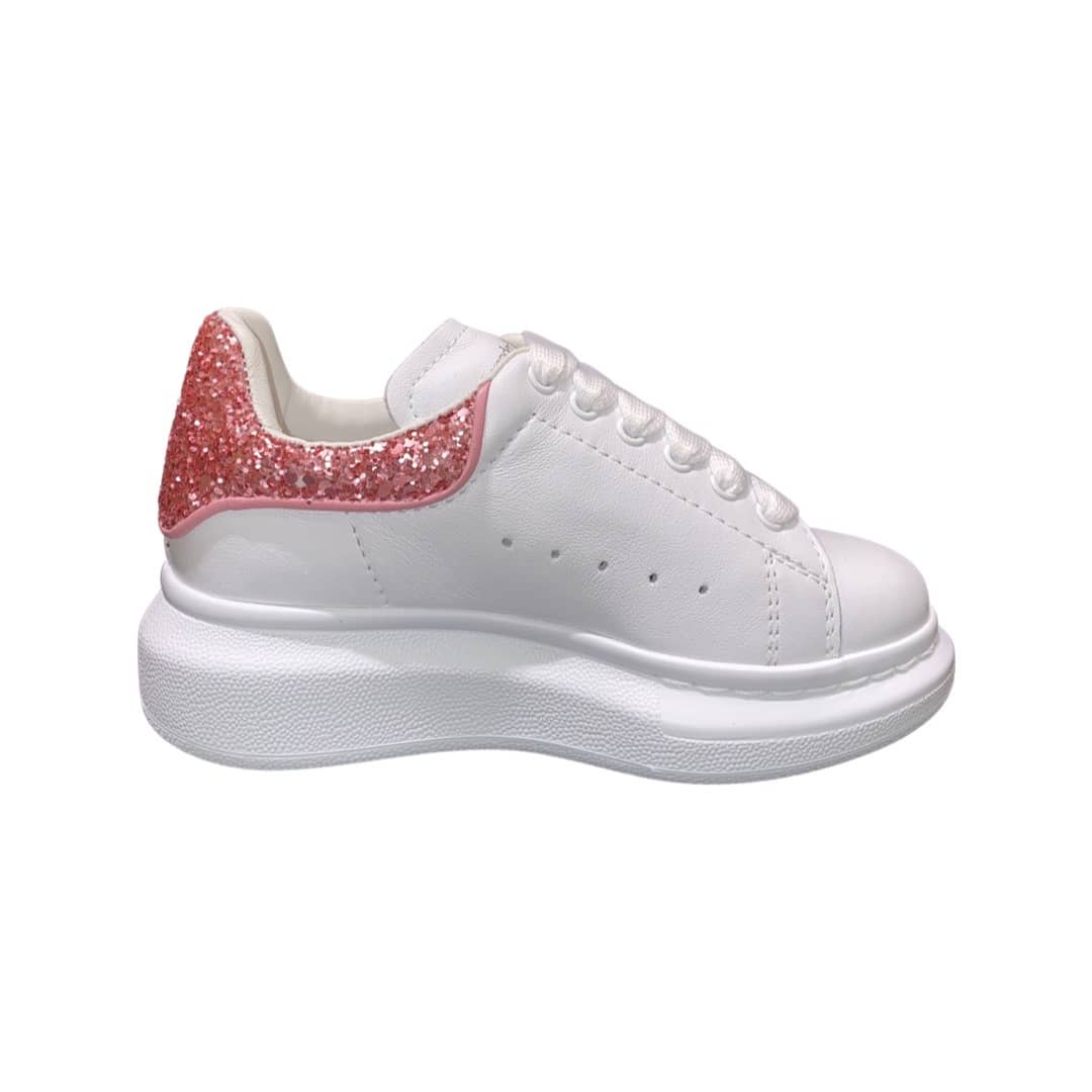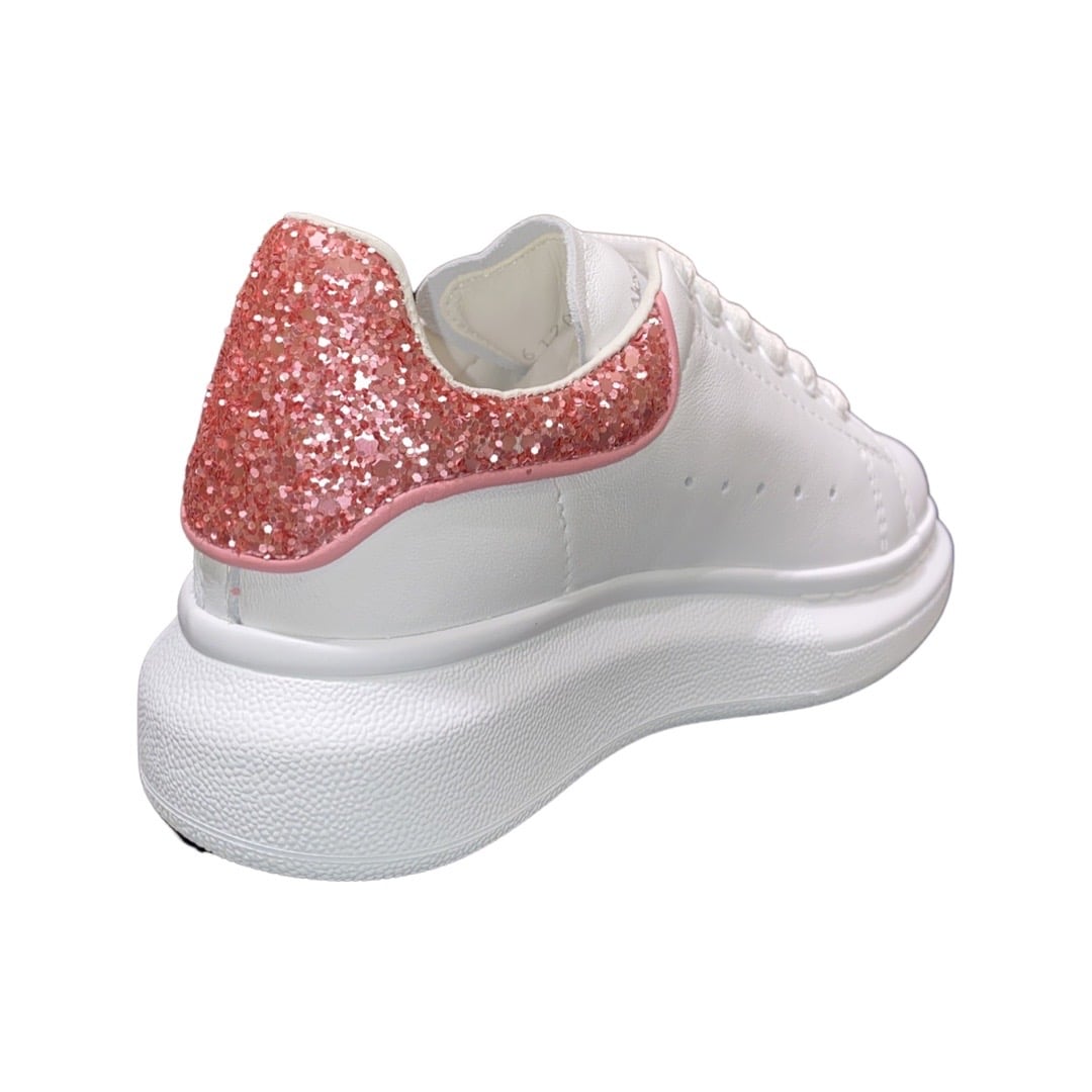 lingua posteriore con glitter rosa-100%morbida pelle vitello bianca