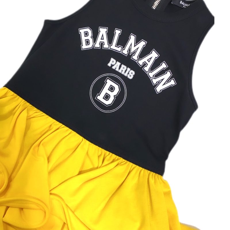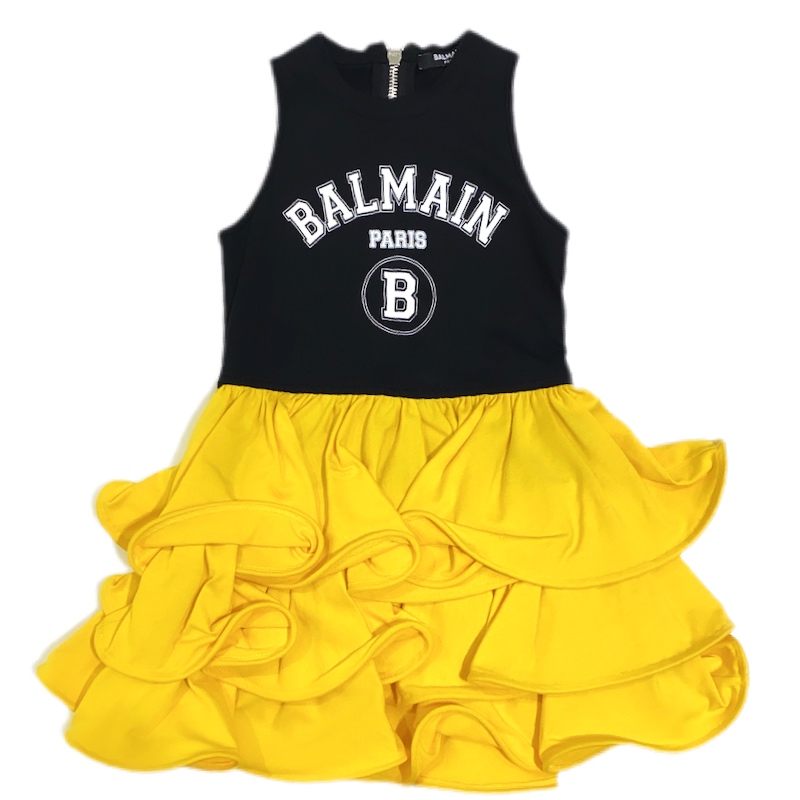 Balmain – Abito smanicato nero-giallo bimba