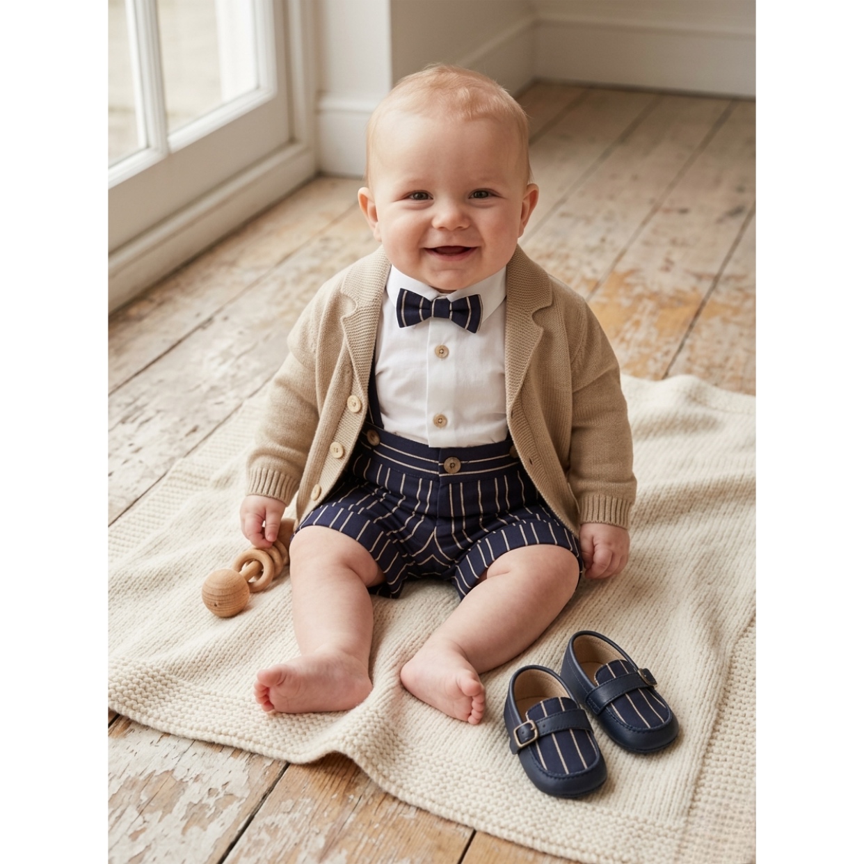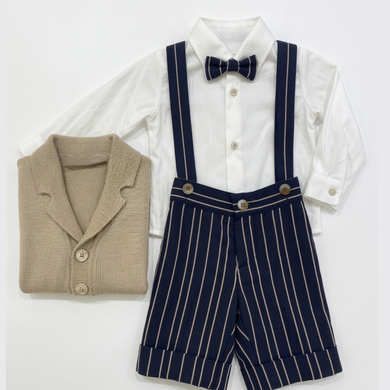 bermuda con bretella-camicia-papillon-cardigan