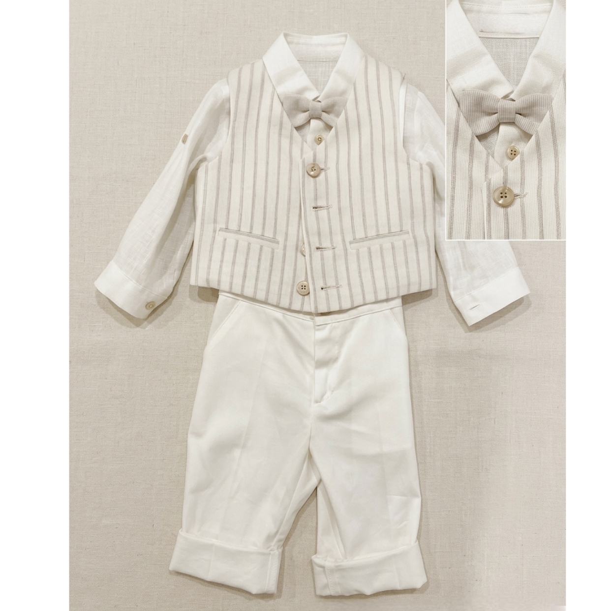 pantalone con bretelle-gilet-camicia-papillon