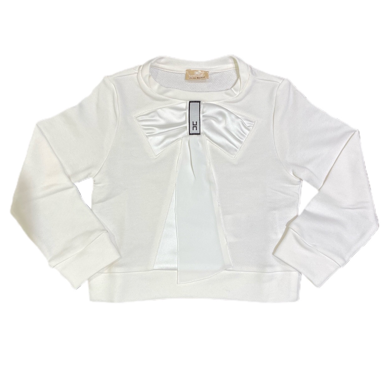 100%cotone-felpa girocollo-fiocco centrale rilievo-logo centrale