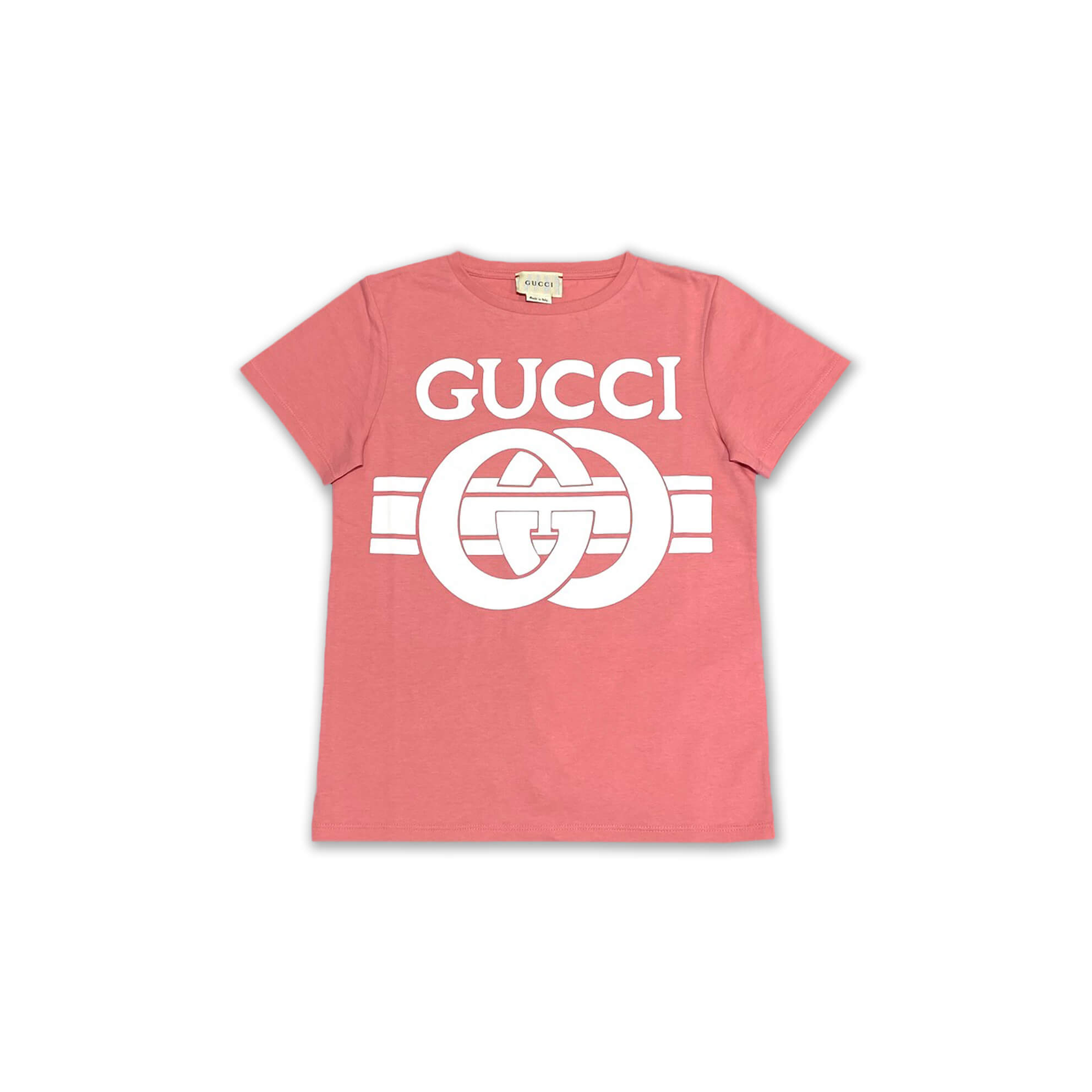 TSHIRT ROSA – 100% cotone Fabbricato in Italia – manica corta – Girocollo – Jersey di cotone Logo Gucci e stampa GG Girocollo