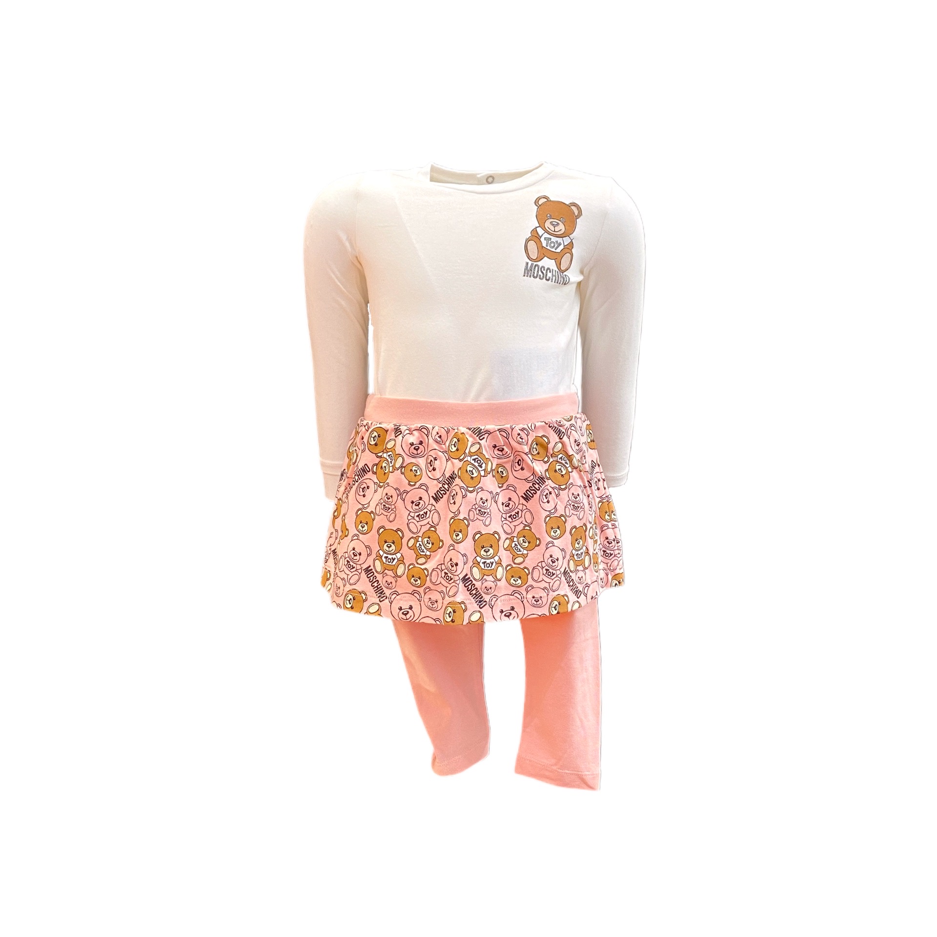 COMPLETO 2 PEZZI TSHIRT MANICA LUNGA 100%COTONE-CHIUSURA POSTERIORE CON BOTTONI A PRESSIONE-GONNA CON LEGGINS 100%COTONE
